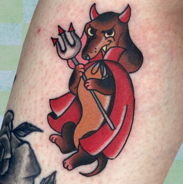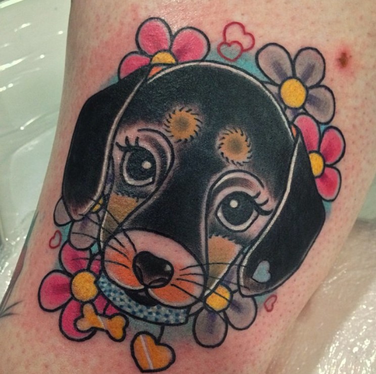 more commonly referred to as a wiener or sausage dog and feature in many “hot dog” tattoos.