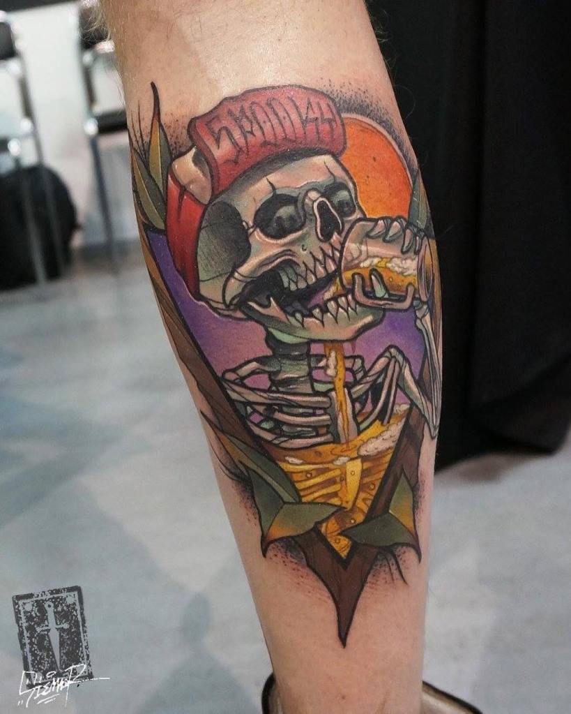 Skeleton enjoying some beer. Tattoo by @siemor_ntc
