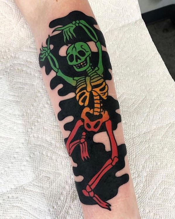 The human skeleton is quite impressive, much like these tattoos. Transform this piece of anatomy and common Halloween decoration into something silly or seriously spooky with the help of ink, a tattoo machine and your favourite tattooer.