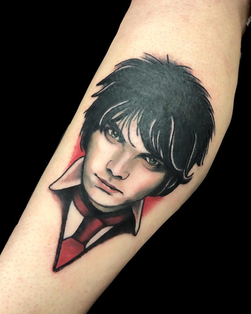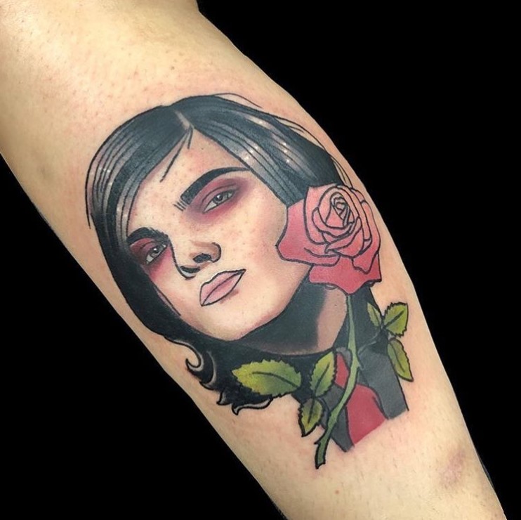 Neo trad Gerard Way portrait tattoo by @sadee_glover