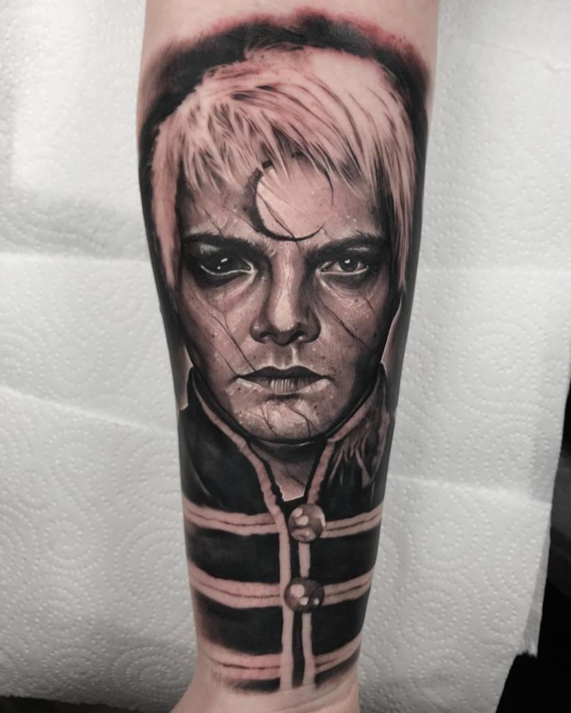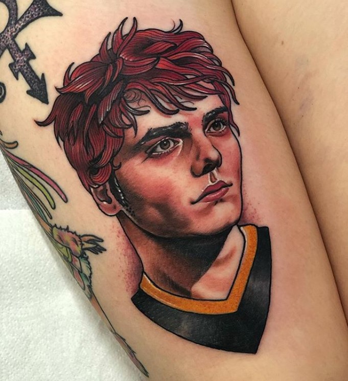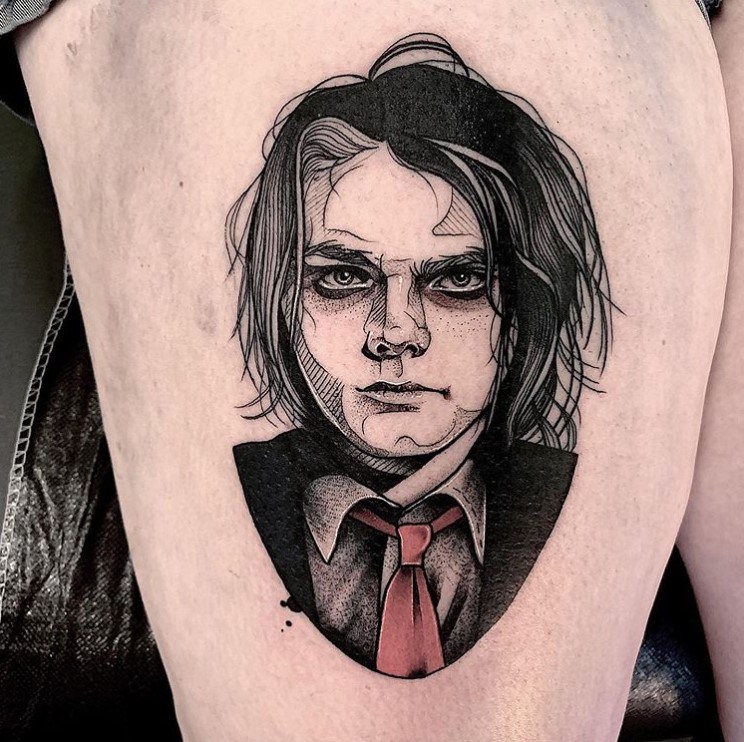 Dark trash realism Gerard Way tattoo by @anrijsstraume