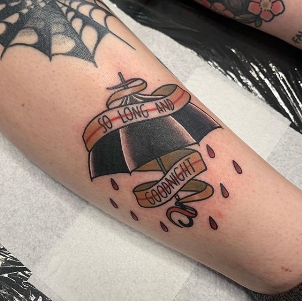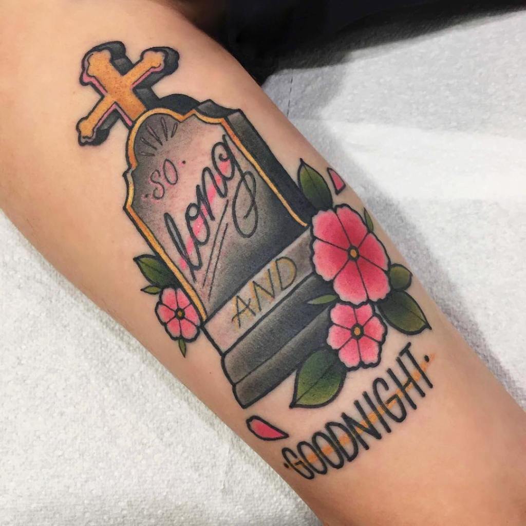 So Long And Goodnight. My Chemical Romance themed tombstone tattoo by @melodycrowtattoos