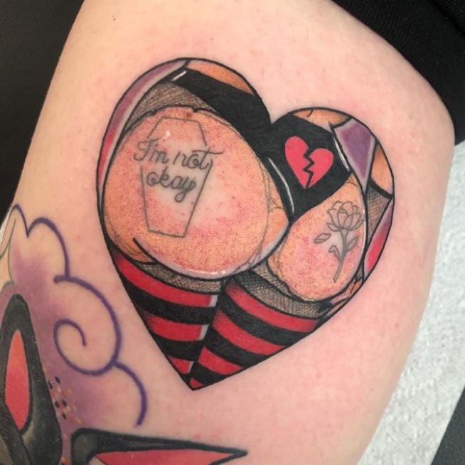 My Chemical Romance butt babe love heart tattoo by @lucybluetattoo