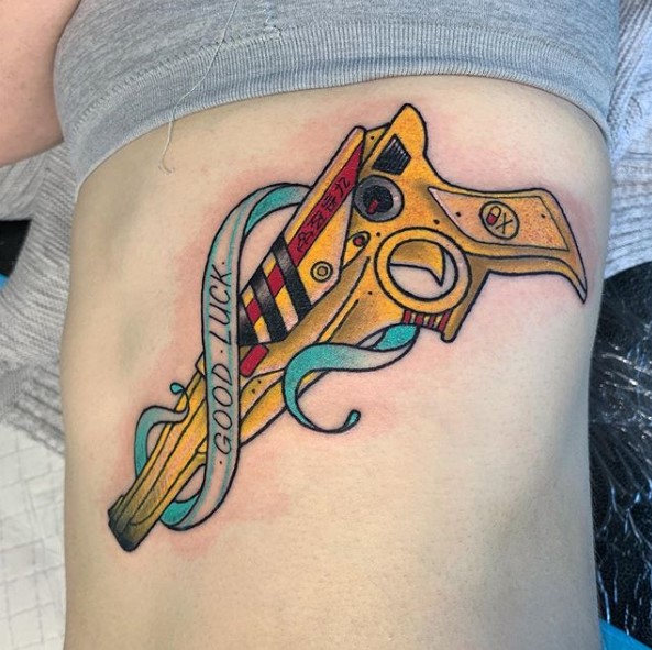 My Chemical Romance themed gun tattoo by @amandabrookstattoo