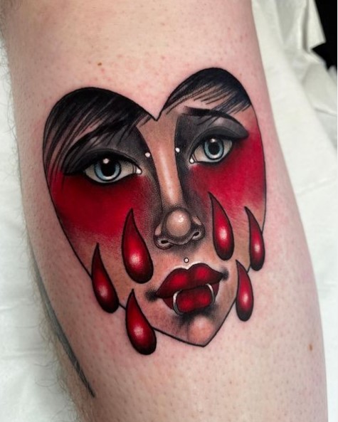Neo trad My Chemical Romance themed heart face tattoo by @paulacastletattoos