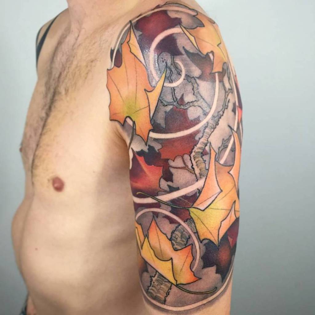 New school autumn leaves tattoo by @seangardnerisawesome