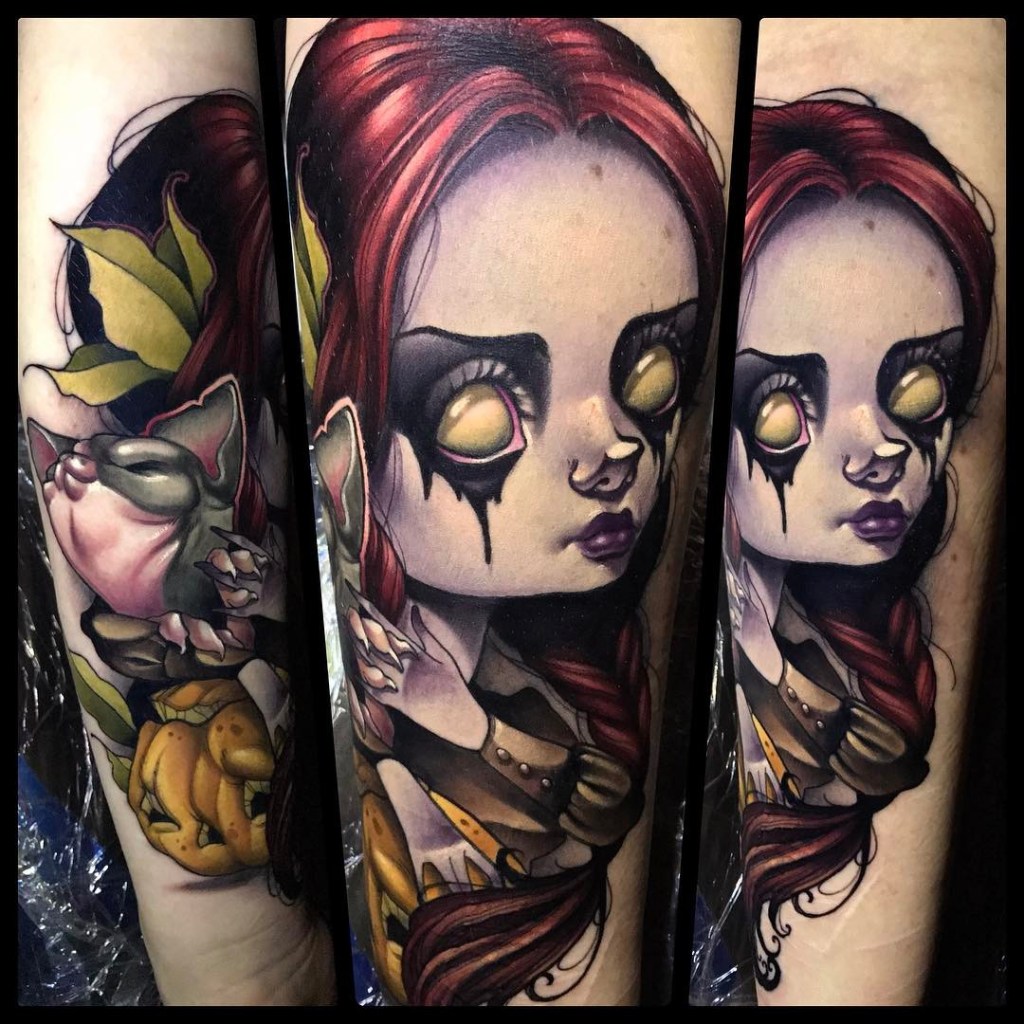 New school spooky autumn girl tattoo by @kellydotylovessoup