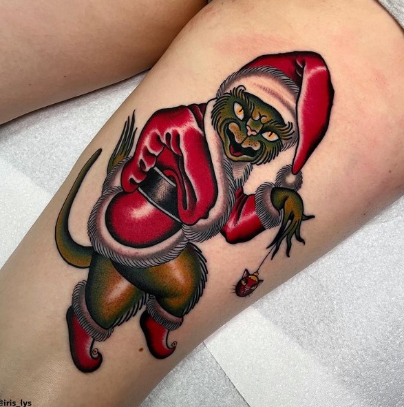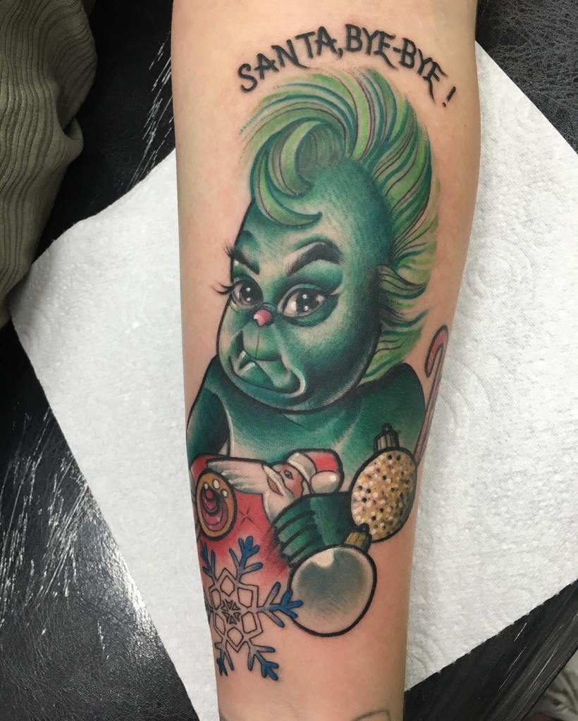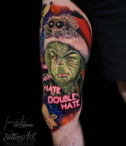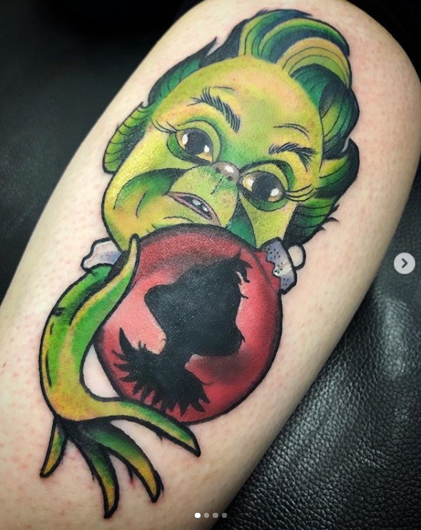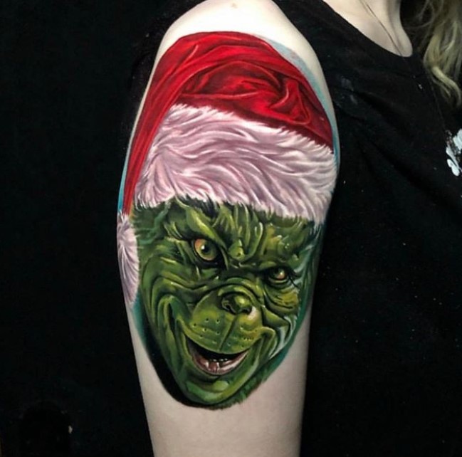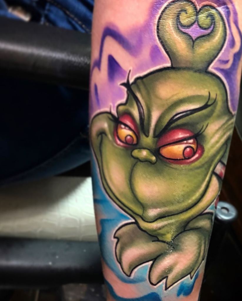 While children can only enjoy the film, those of us who are over 18 are able to express our love for the Grinch in a more permanent manner. When it comes to tattoos you’ll find the Grinch in many of his incarnations, from the original book illustration to live-action realism, and even the new computer-animated version.