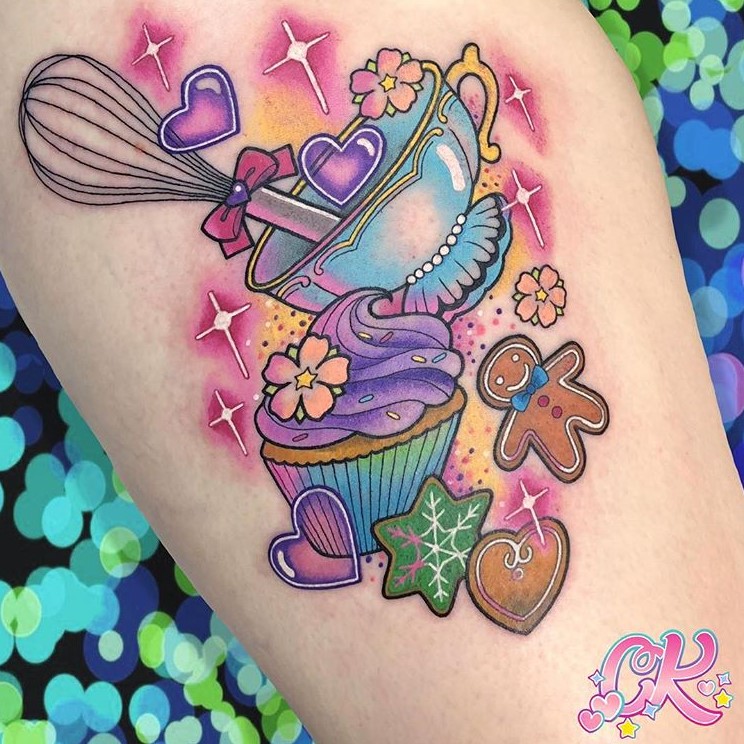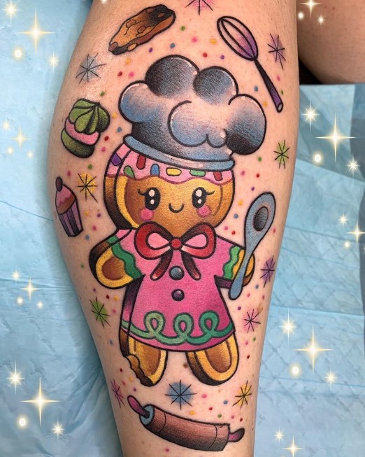 Sparkly baking and gingerbread tattoo by @carly.kawaii