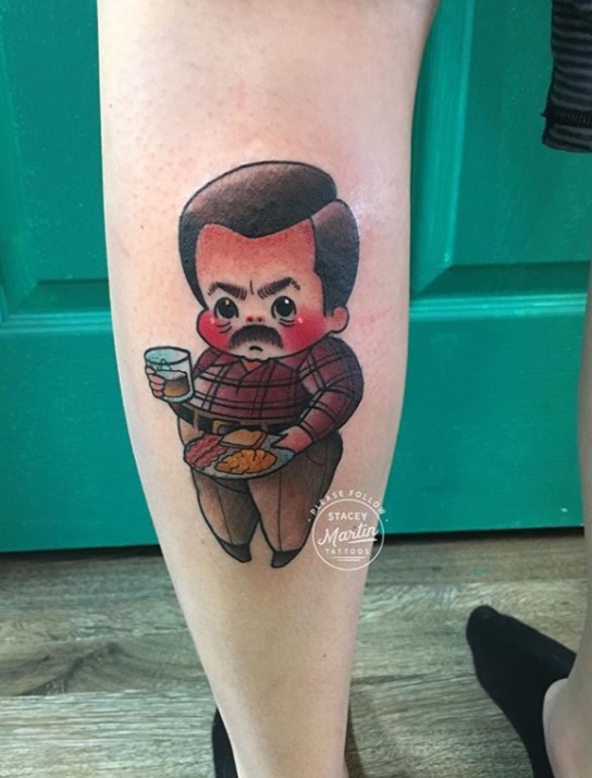 Ron Swanson kewpie tattoo by @staceymartintattoos