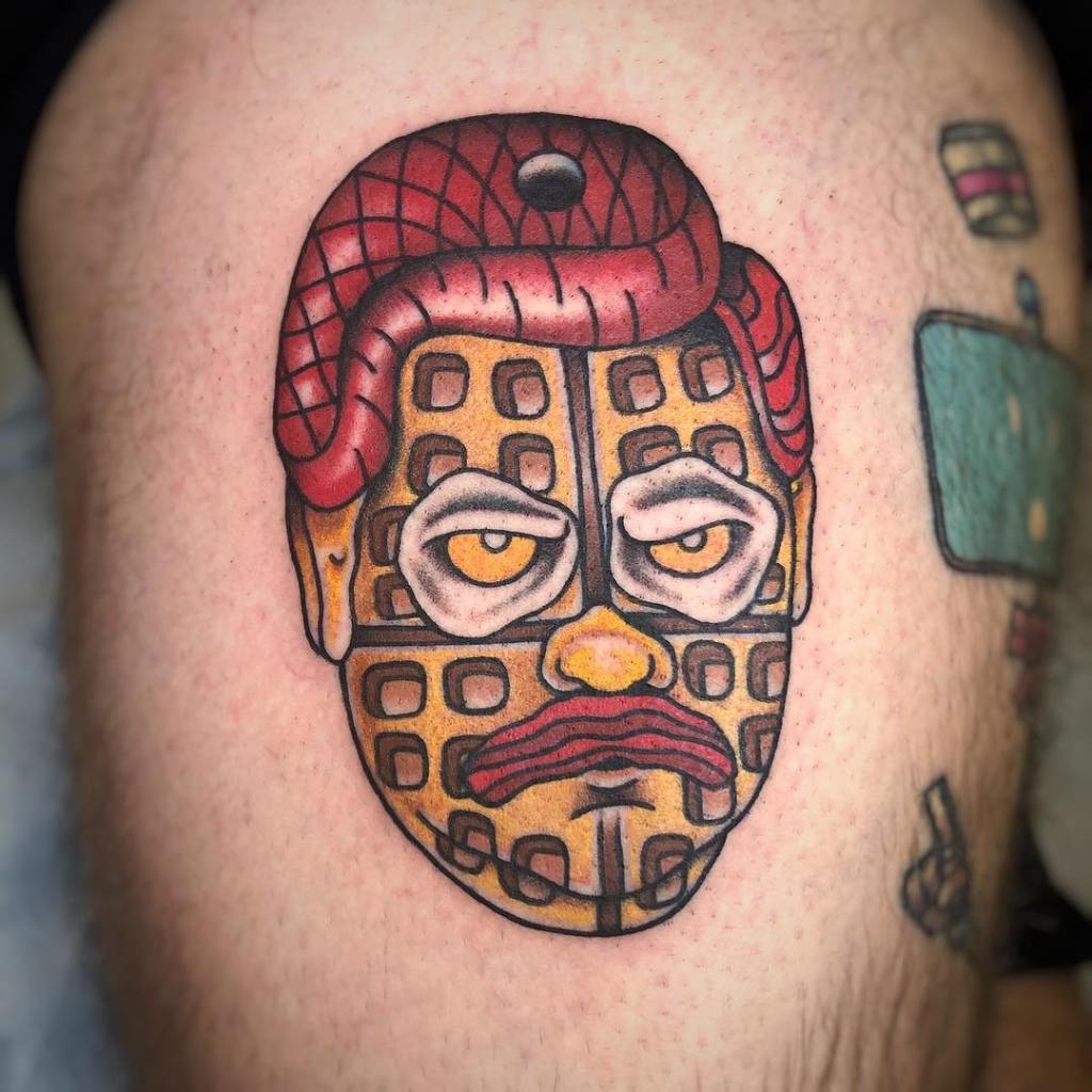 Leslie and Ben waffles and calzone (Parks and Recreation) tattoo by @nicole_draeger