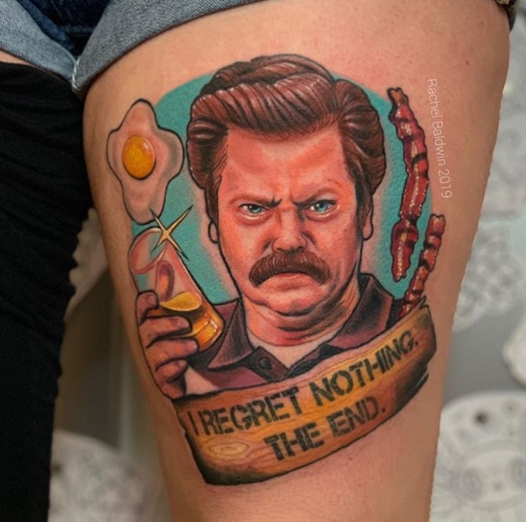 Ron Swanson tattoo by @rachelbaldwintattoo