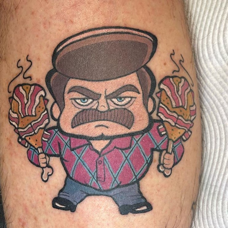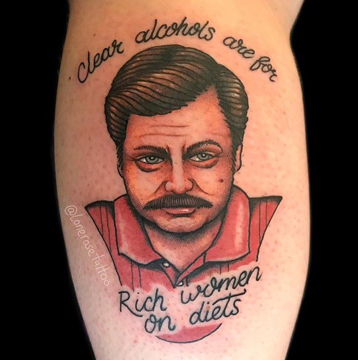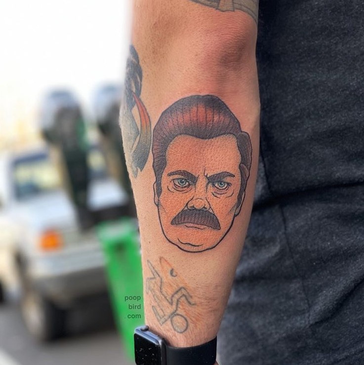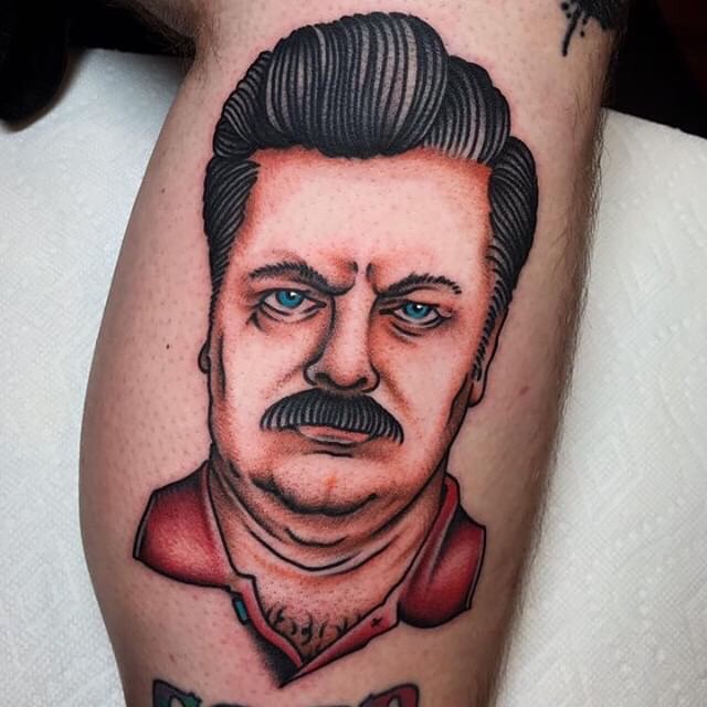 Traditional style Ron Swanson tattoo by @tonytrustworthy
