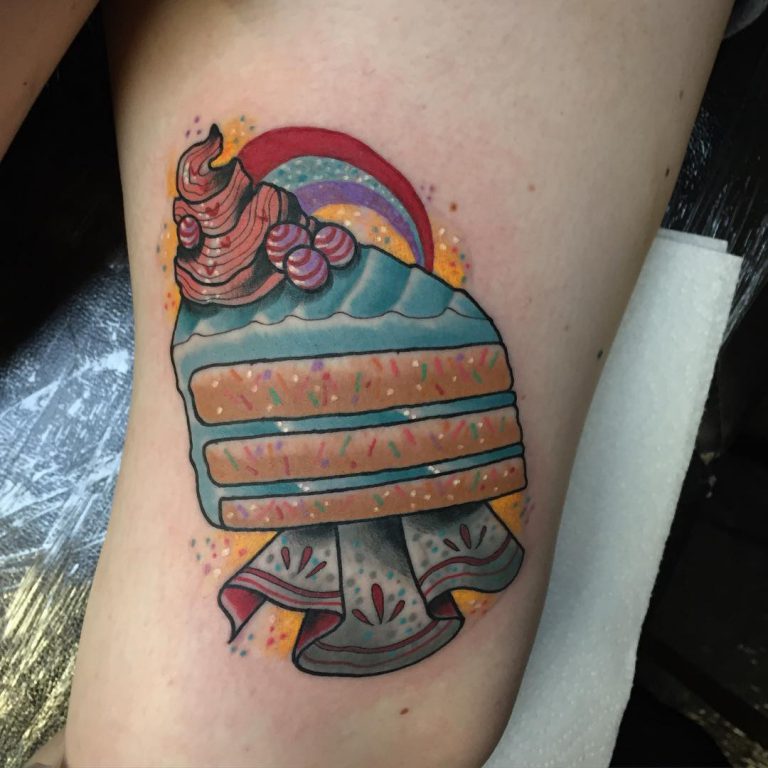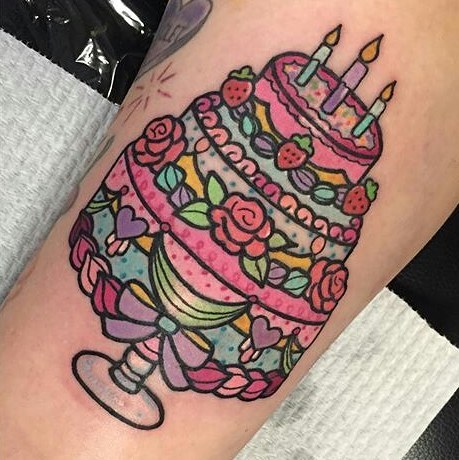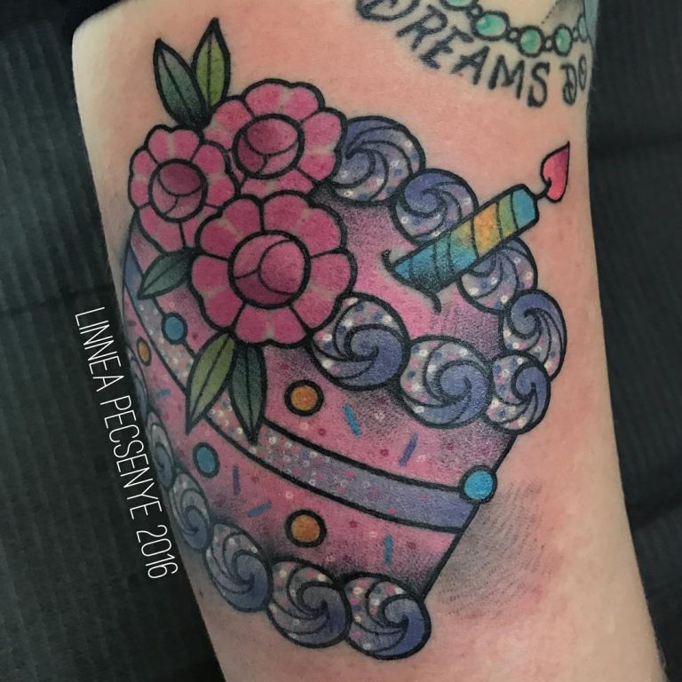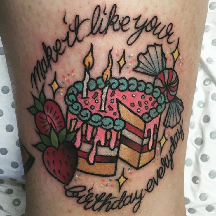 I’m not someone who enjoys celebrating my birthday with a party or even a cake. Years ago, I used to spend my birthday treating myself to a new tattoo. It’s my birthday tomorrow, but I won’t be getting tattooed this year, so I’ve decided to share some (birthday cake) tattoos with you instead.