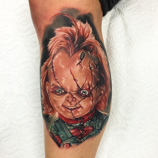 Colour realism Chucky (Seed of Chucky) tattoo by @khantattoo