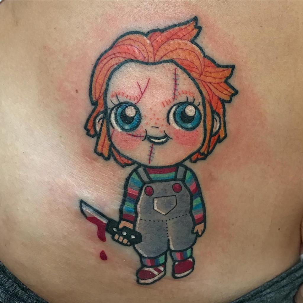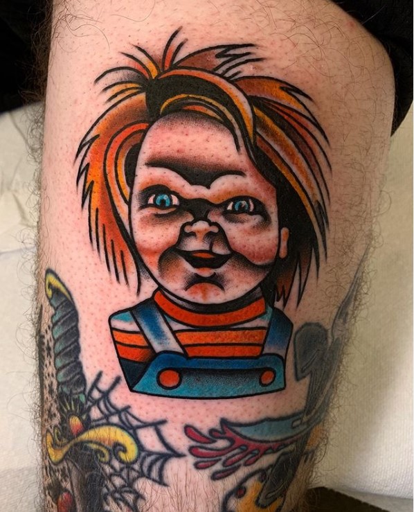 Traditional style Chucky kewpie tattoo by @iamjimmyjam