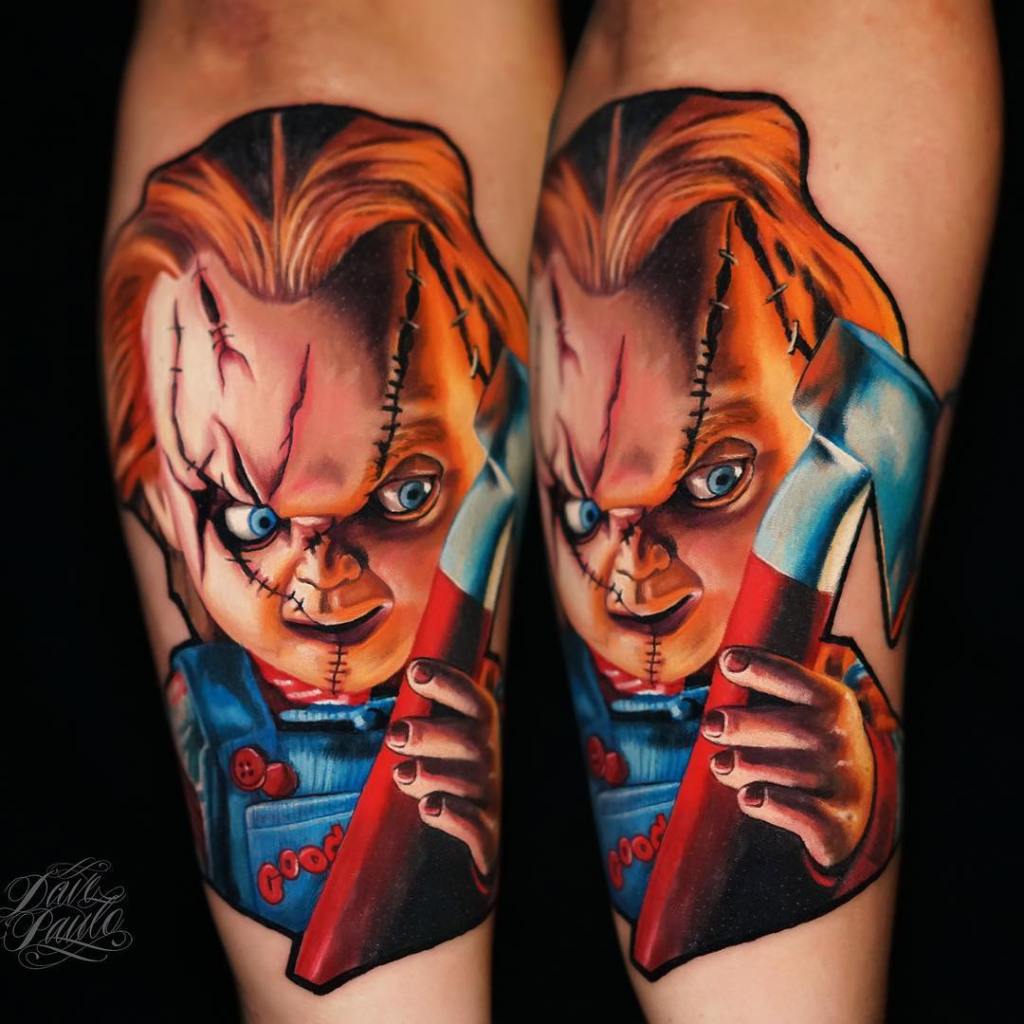Colour realism Chucky tattoo by @davepaulo_tattooartist