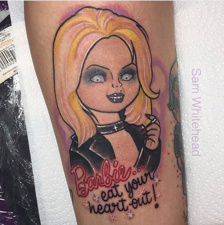 Chucky and Tiffany kewpie tattoos by @spawnjeremy