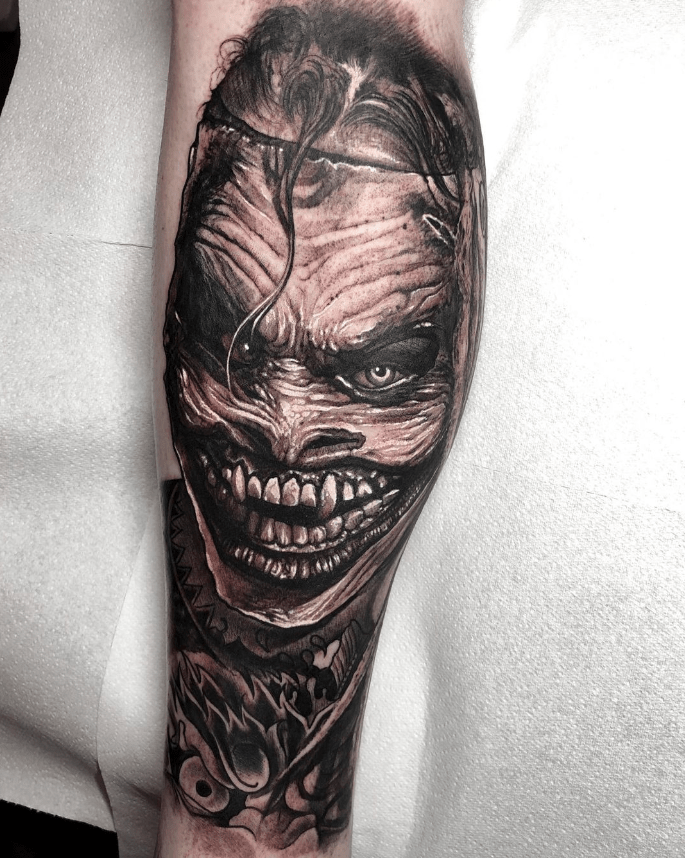 When you can’t decide between Surfer Sting and The Crow Sting, you get a face split tattoo.