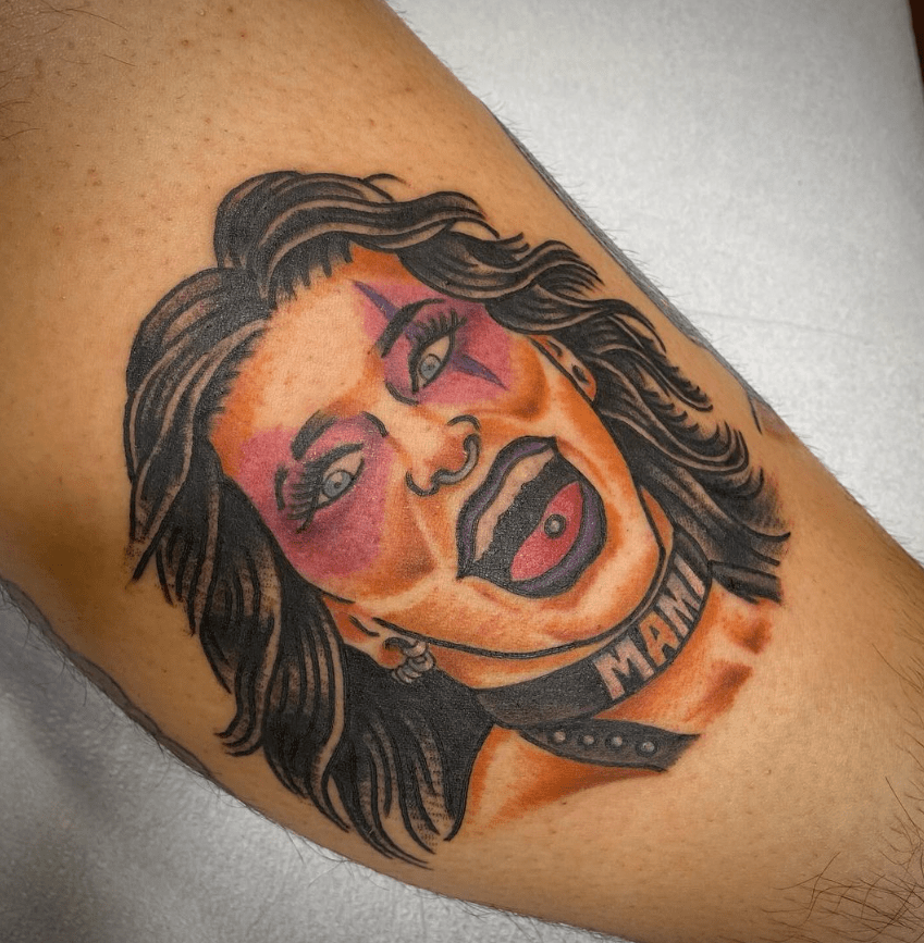 I absolutely loved Rhea Ripley’s look at this year’s WrestleMania XL, and despite being in the traditional tattoo style, it still translates so well to skin.