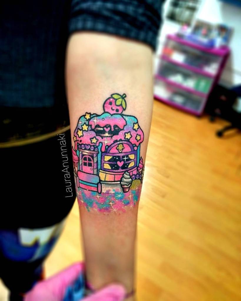 Polly Pocket ice cream parlour tattoo by @lauraanunnaki