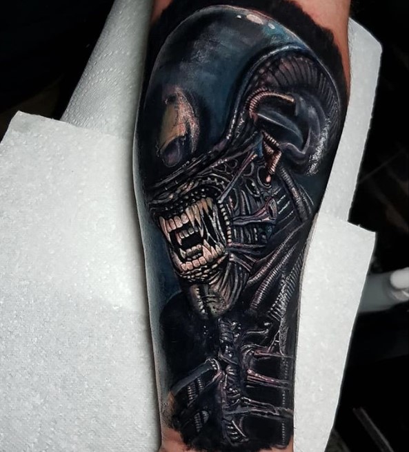 Colour realism Xenomorph tattoo by @davepaulo_tattooartist
