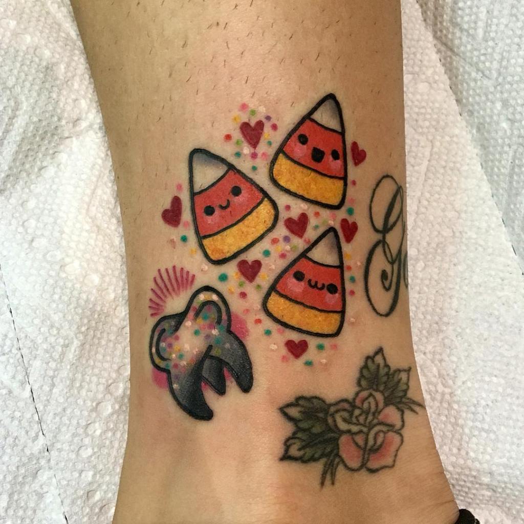 It might be your least favourite candy, but I think you could find at least one candy corn tattoo in this list that you like… at least a little bit.