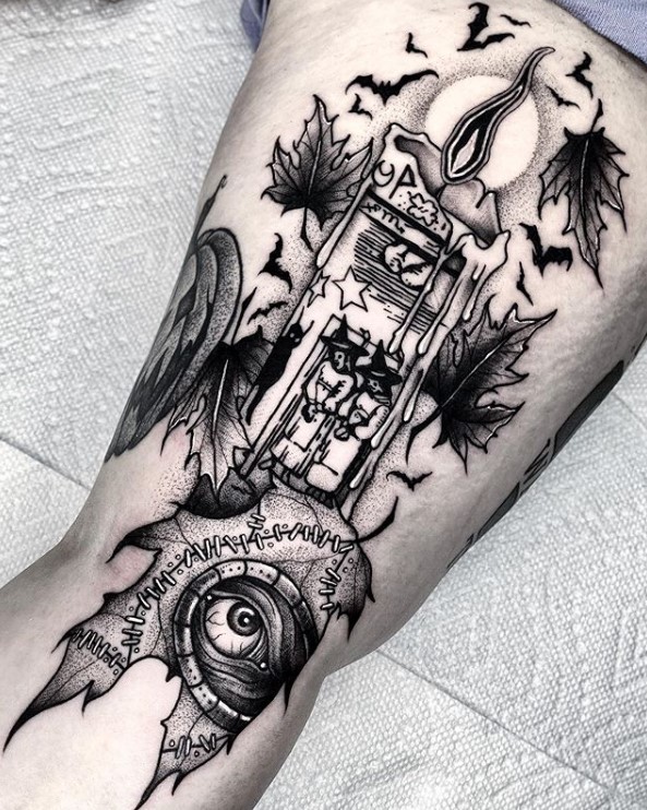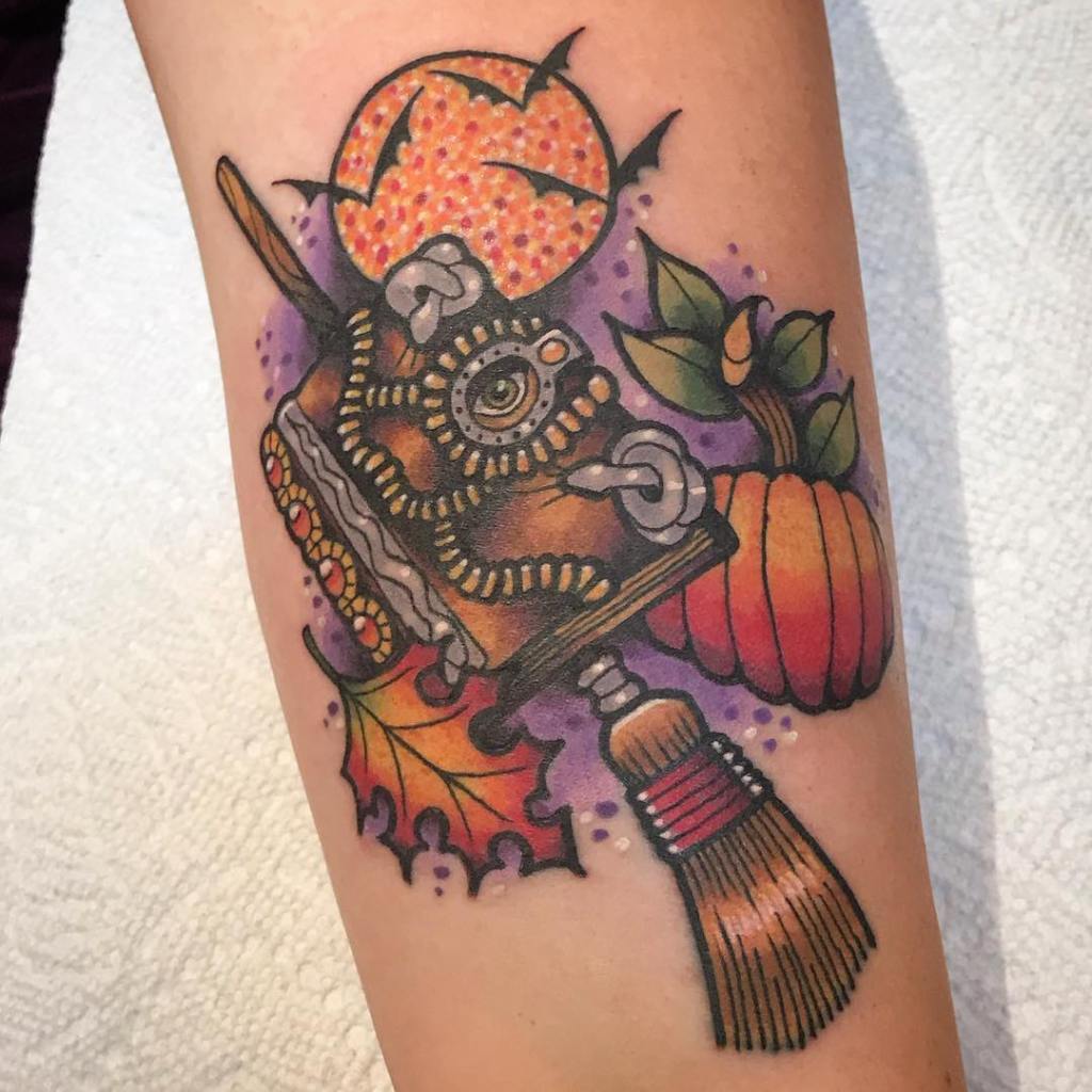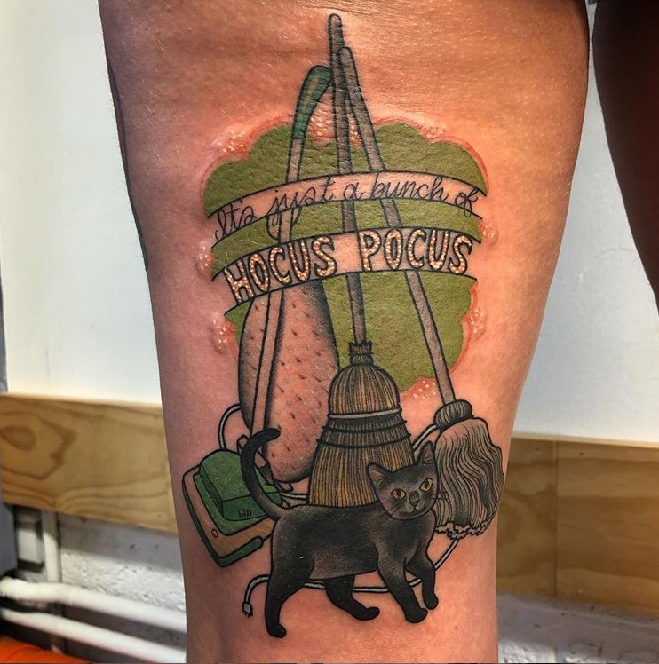 Hocus Pocus and Halloween themed tattoo by @matthewlimberstattoo