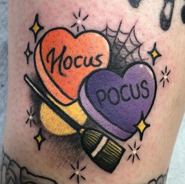 Hocus Pocus candy hearts tattoo by @roxyrydertattoo
