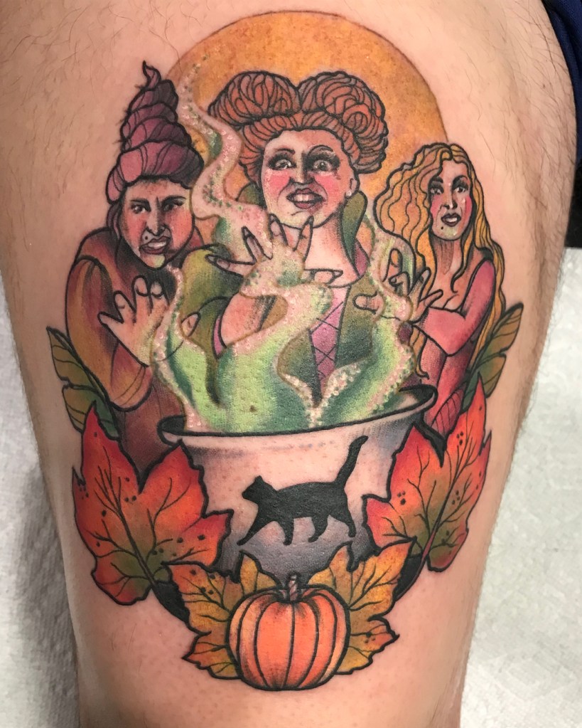 Hocus Pocus themed tattoo by @attackofthe50footwoman