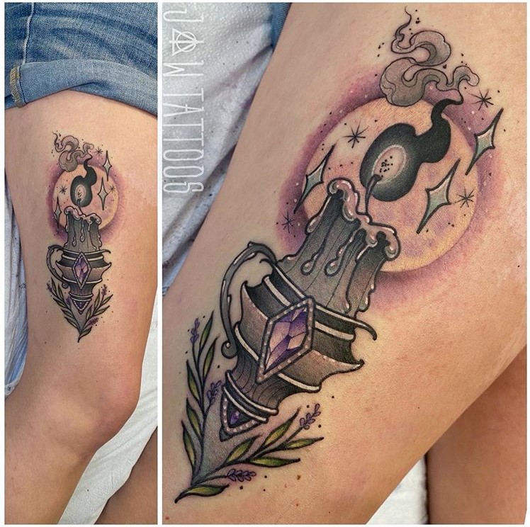 Another neo trad Hocus Pocus inspired black flame candle tattoo by @jawtattoos