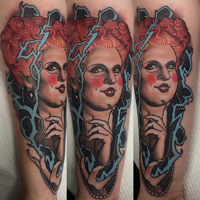 New school Winifred Sanderson tattoo by @joshhermantattoo