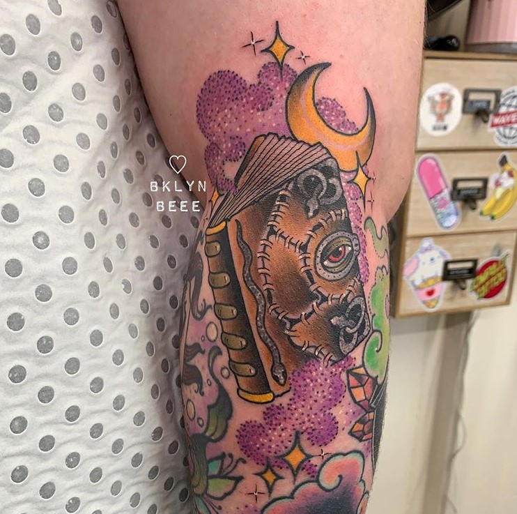 Neo trad Hocus Pocus tattoo by @alexrowntreetattoo