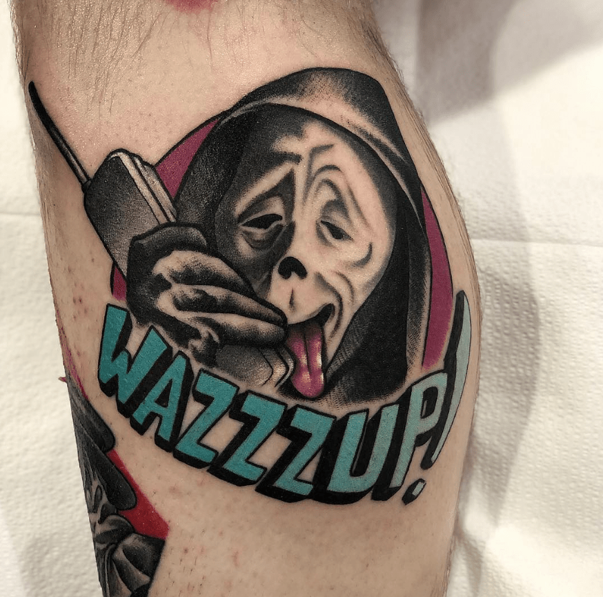 There’s no consensus on how “wazzup” should be spelled, but there’s no argument to be made about how well these tattoos portray the ridiculousness of a scene and a character from the first two Scary Movie films.