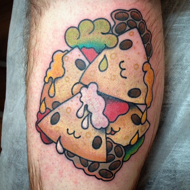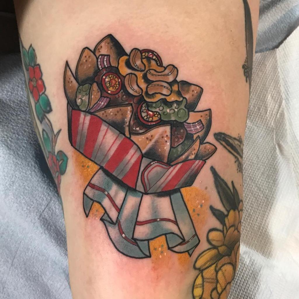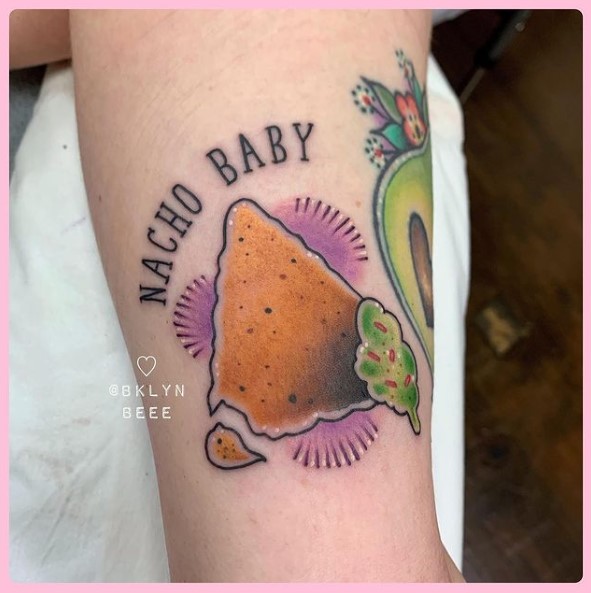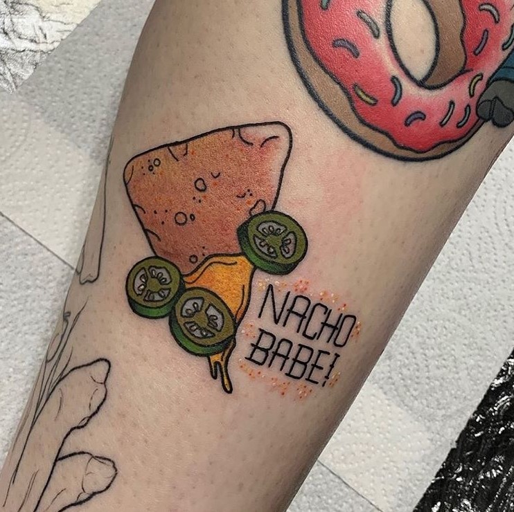 You can get a nacho tattoo and be inspired by these pieces, but your chosen tattoo artist should be drawing from scratch. See the kawaii nacho tattoos below – it’s a similar concept but with unique, custom designs drawn up for the client. Just like any nacho lover doesn’t want to share their actual plate of loaded nachos with anyone, you also can’t share tattoos.