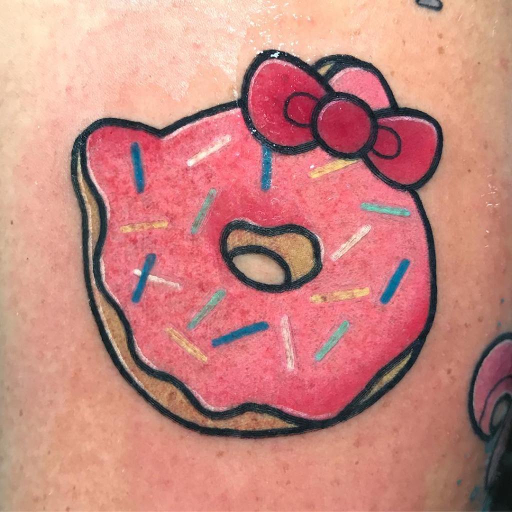 Hello Kitty themed donut tattoo by @tattoosbymeri