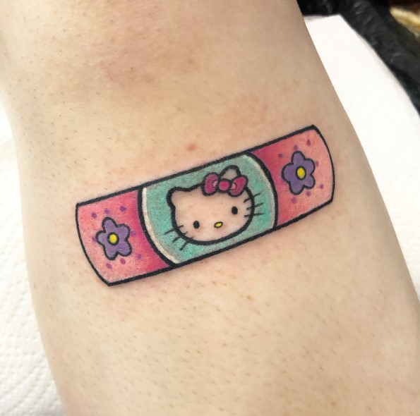 Hello Kitty bandaid tattoo by @roxyrydertattoo