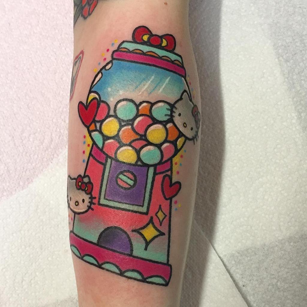 Hello Kitty gumball machine tattoo by @roxyrydertattoo