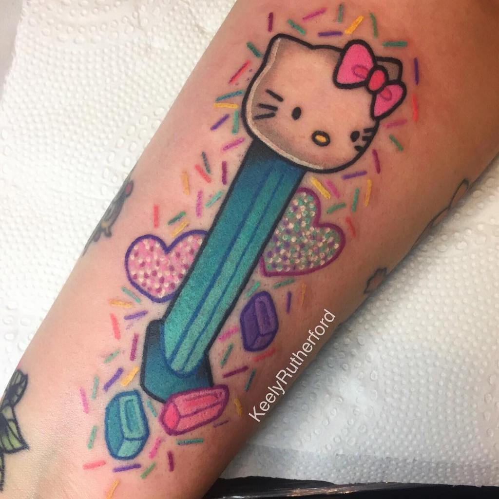 Hello Kitty PEZ sparkly tattoo by @keelyglitters