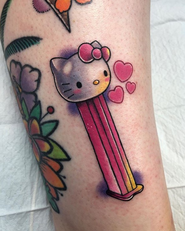 Hello Kitty PEZ dispenser tattoo by @stefansalamone