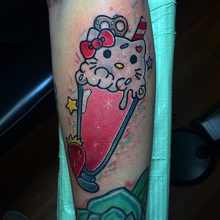 Hello Kitty themed milkshake tattoo by @alexiscraneart