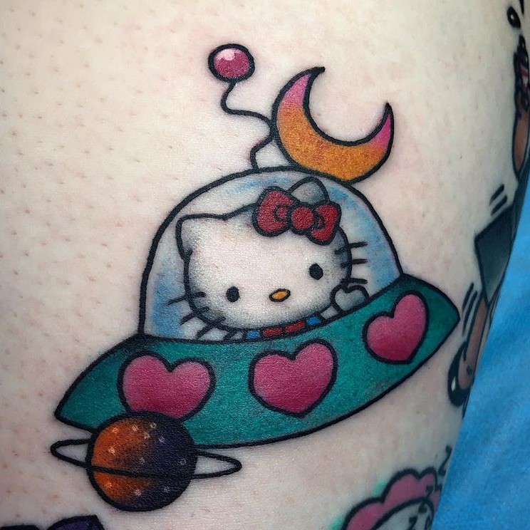 Hello Kitty UFO tattoo by @sanae_kawaii