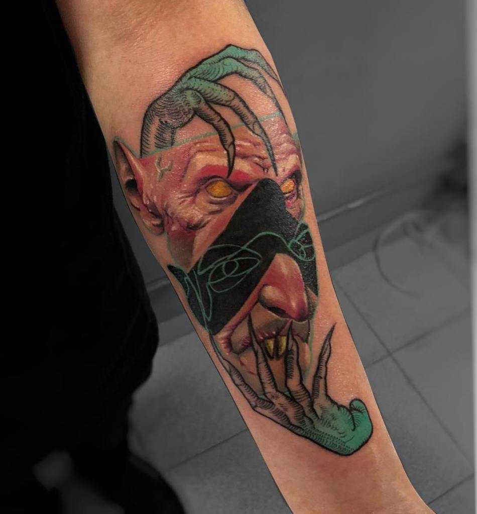 Neo trad Count Orlok (Nosferatu) tattoo by @hatchetricky