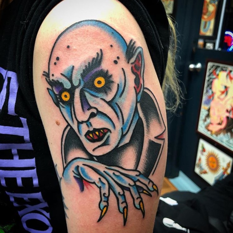 Traditional style Count Orlok (Nosferatu) tattoo by @chuckieneedles