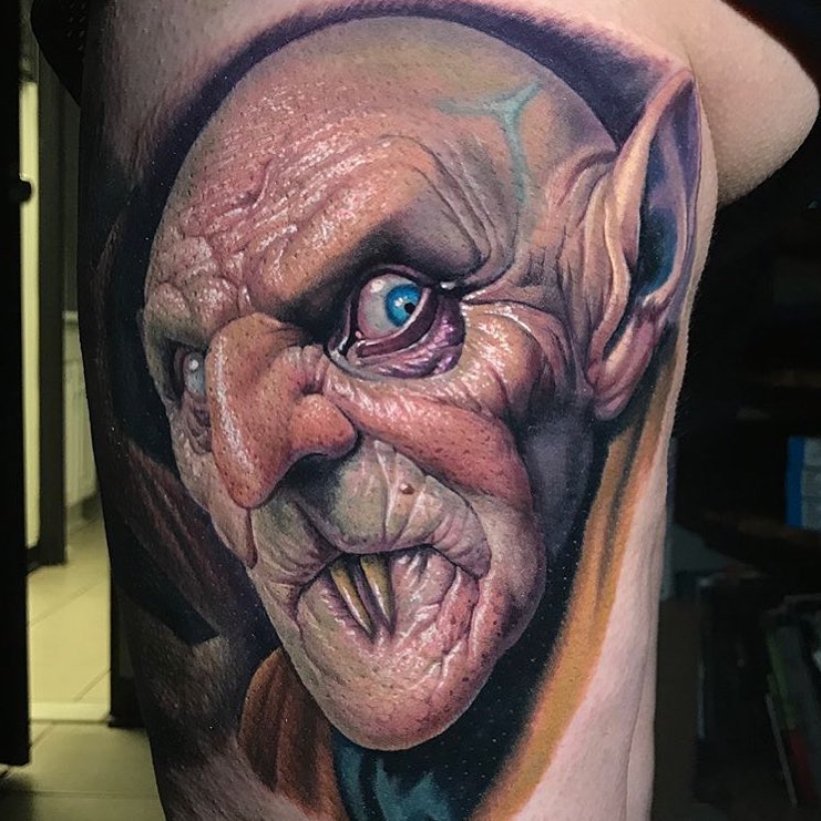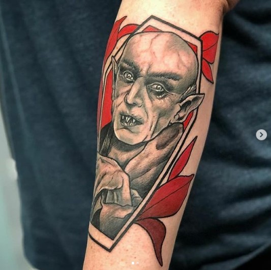 Colour realism Count Orlok (Nosferatu) tattoo by @thealexwright
