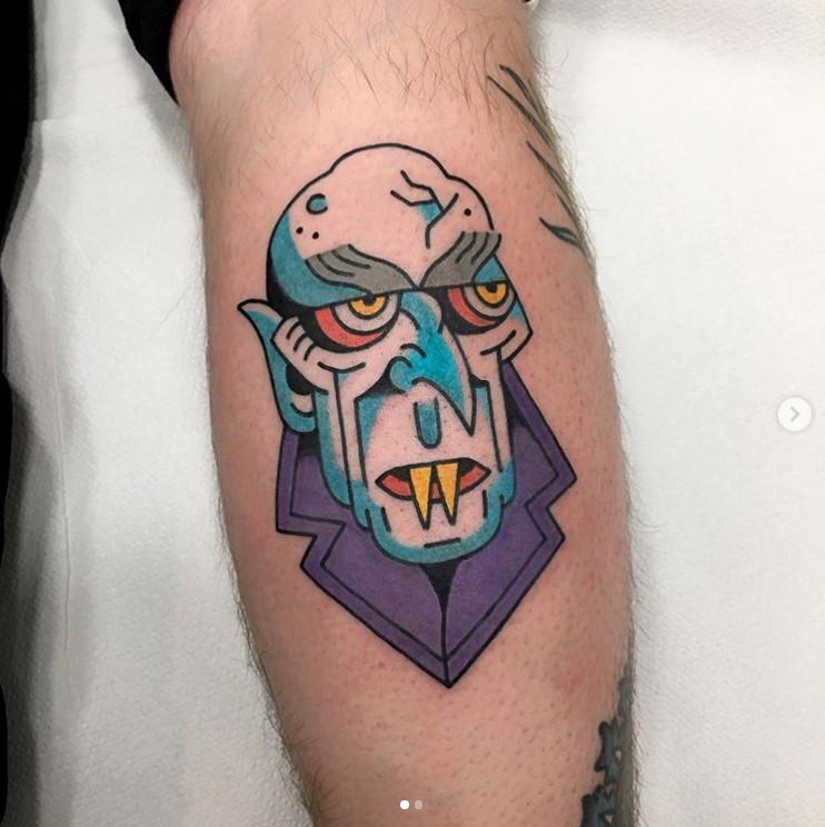 Traditional Count Orlok (Nosferatu) tattoo by @fakelegfoxtattoo
