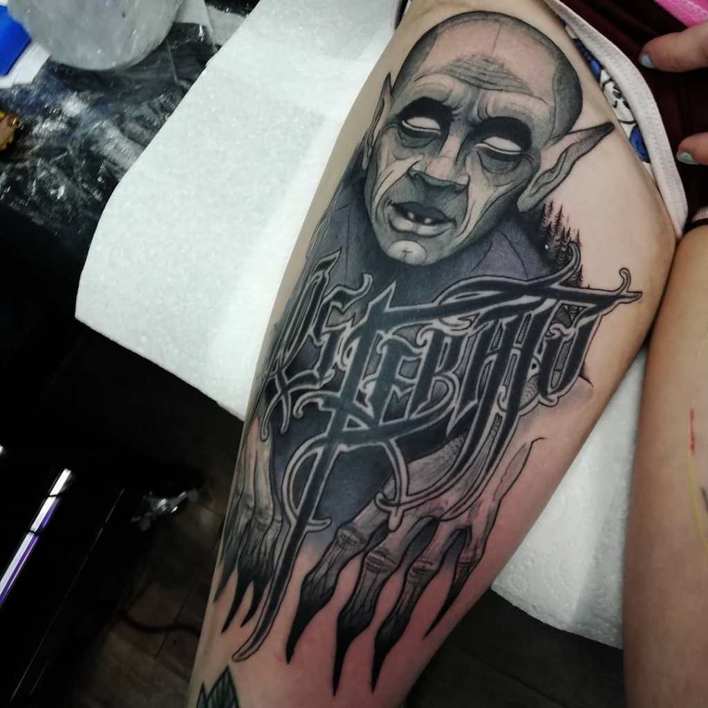 Black and grey Count Orlok (Nosferatu) tattoo by @bobtyrrell