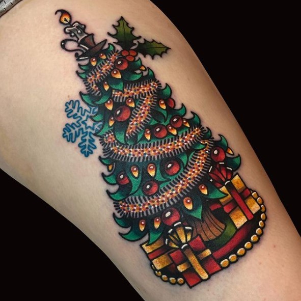 Decorate Your Body With a Christmas Tree and Ornaments Tattoo