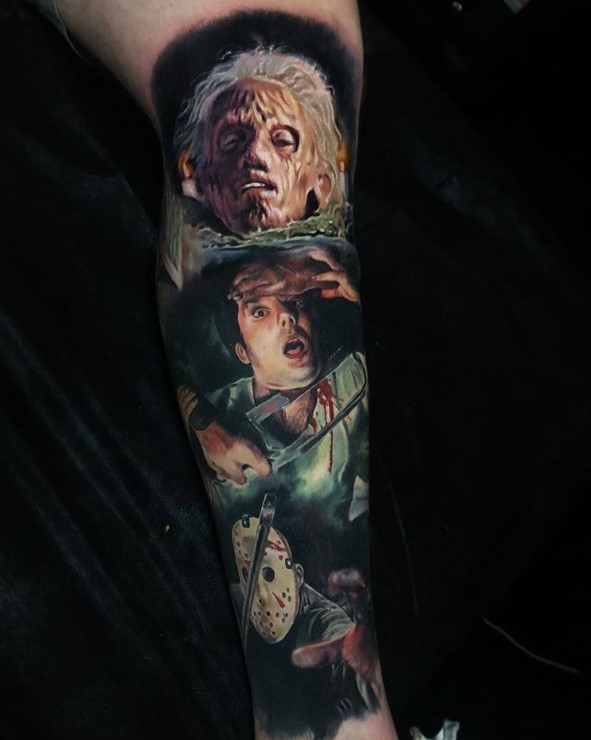 What I have compiled for you here is a simple list to help you easily locate all of the incredible tattoos of horror movies and their villains from the ’70s onwards to have already made their way on to TTA.