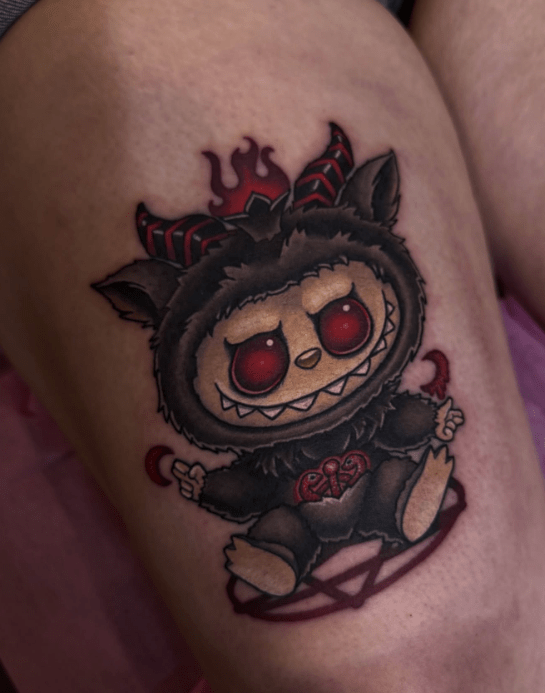 With their large eyes and pointy teeth, Labubus are the kind of creepy and cute characters that exude spoopy vibes, a now common tattoo style.
